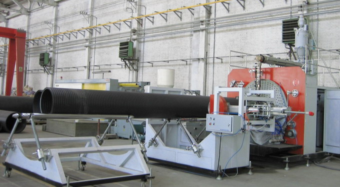 HDPE大口徑中空壁纏繞設(shè)備我司依據(jù)多年的設(shè)計(jì)生產(chǎn)經(jīng)驗(yàn),結(jié)合歐洲先進(jìn)管業(yè)設(shè)備制造工藝,可生產(chǎn)管材口徑200-3000mm的大型管材。生產(chǎn)機(jī)組以HDPE為主要原料,經(jīng)第一臺(tái)擠出機(jī)擠出管材,后經(jīng)定型冷卻機(jī)定型,進(jìn)入纏繞成型機(jī),進(jìn)入纏繞成型機(jī),同時(shí)第二臺(tái)擠出機(jī)擠出溶膠條以螺旋線形式粘合制成成品。按照不同使用條件此生產(chǎn)線可以生產(chǎn)出4個(gè)剛度等級(jí)的纏繞管制品。制品具有無毒,無味,防腐蝕,抗老化,耐候性好等特點(diǎn),可在地下和地表使用,廣泛應(yīng)用于農(nóng)用,工業(yè)的輸水工程。