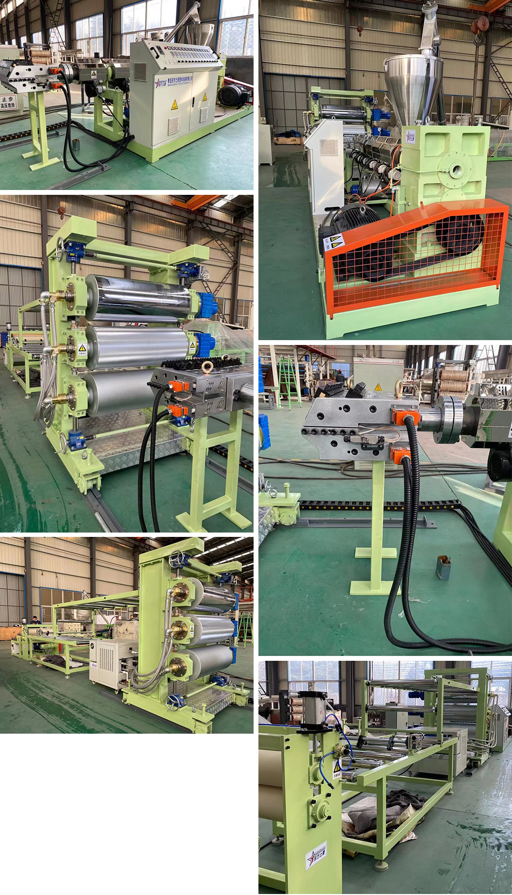 PP/PE/PS塑料片材生產(chǎn)設備:可生產(chǎn)寬度600-1200毫米、厚度0.5-2毫米的塑料卷材。